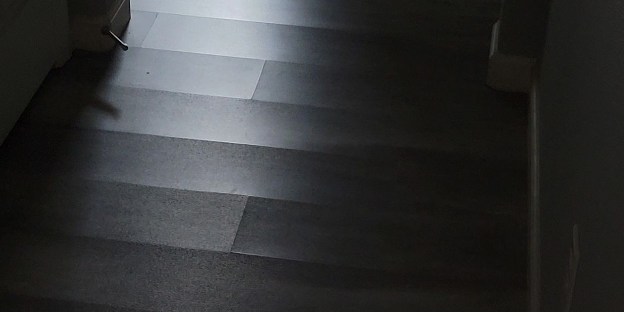 More? No moisture content measurement because he said, he was unable to stick his pin meter into the wood flooring.